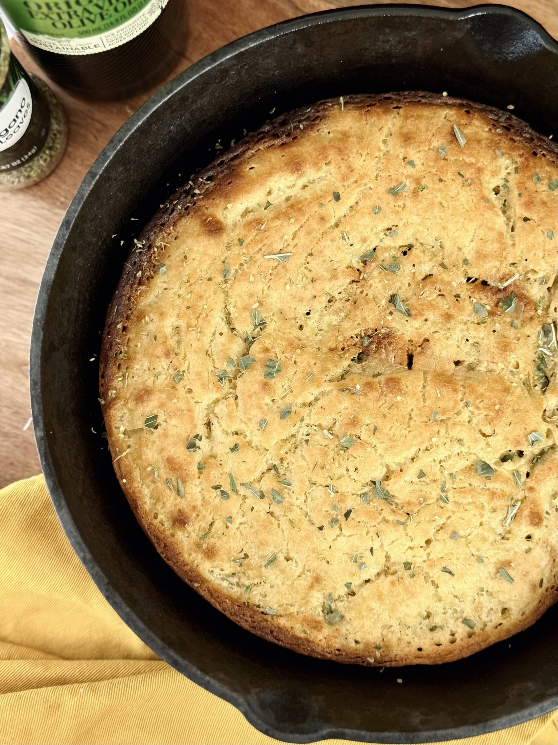 This is one of those rare recipes that’s fast, flexible, and made from pantry staples. Since it’s a discard recipe without chemical leavening (like baking powder or soda) or perishable ingredients (like banana, eggs, or butter), you can ferment it to your hearts content. The chickpea flour gives it a protein boost and rich flavor, while the texture stays crispy on the outside and tender inside. Eat it simply with olive oil and herbs, or load it up with toppings.