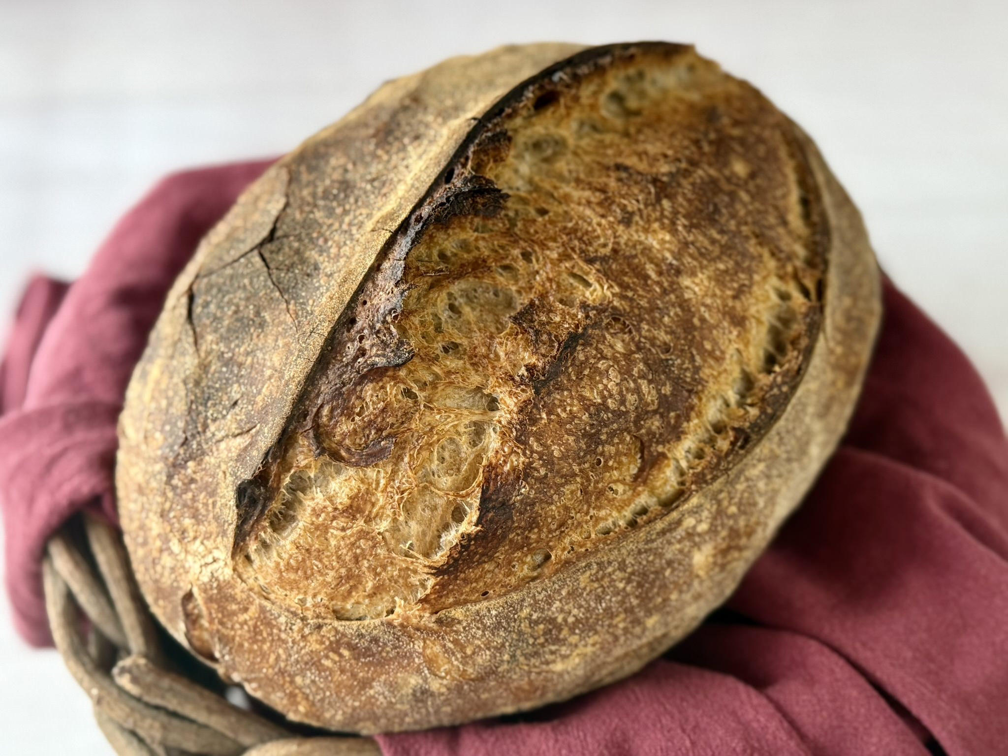Country bread is a French-inspired rustic sourdough loaf. It’s a free-standing bread, also known as “hearth bread,” that’s typically shaped into a boule (round) or a batard (oval). This is the bread that most people simply call “sourdough” today. It was popularized in the early 2000’s by Chad Robertson, whose book, Tartine Bread, is the root for which all modern sourdough is based today.